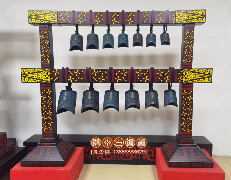 簡介:13件2層古編鐘,是根據(jù)曾侯乙編鐘設(shè)計(jì)制作,編鐘為青銅鑄造,采用標(biāo)準(zhǔn)音高A=440Hz調(diào)音,音階G4—A6。編鐘大梁采用優(yōu)質(zhì)松木制作,表面噴漆,彩繪花紋