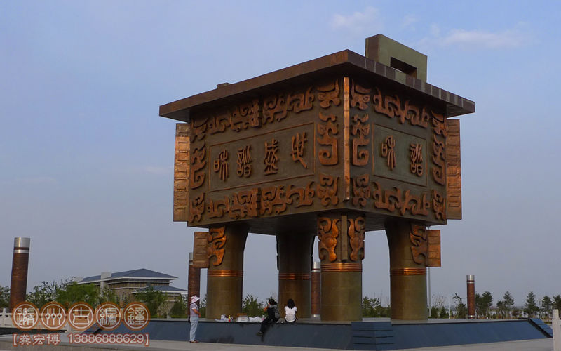 簡介:2008年,隨州市古編鐘文化發(fā)展有限公司為寧夏銀川市人民政府制作了高達(dá)12米的“和諧盛世寶鼎”,成為城市的一大景觀,該鼎用進(jìn)口優(yōu)質(zhì)紫銅板鍛造而成,它重達(dá)48噸。在國內(nèi)這樣規(guī)模的大鼎尚屬第一。
