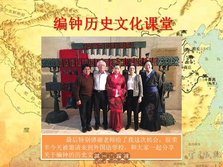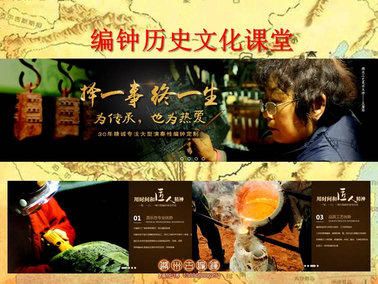 序:同學(xué)們,大家好!我是編鐘文化傳承人龔宏博,從我的父輩起就開始從事編鐘的復(fù)仿制工作,如今已有快30年了,感謝謝老師給了我這次機會,很榮幸今天被邀請來到 學(xué)校,和大家一起分享關(guān)于編鐘的歷史文化。